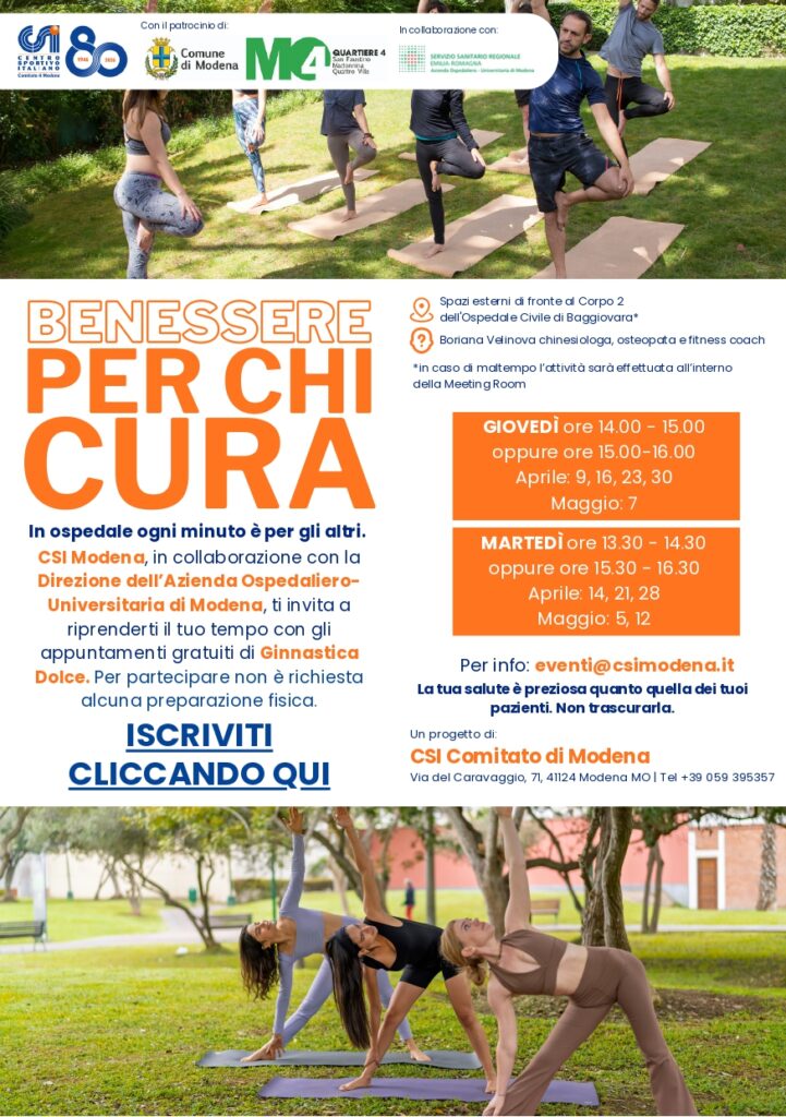 Portare un tempo strutturato di pratiche di benessere e di cura di sé, all’interno degli spazi (esterni e interni) dell’ospedale civile di Baggiovara (MO), in orario diurno e infrasettimanalmente, è da intendersi come auspicabile strumento rigenerativo sia fisico che mentale per i professionisti del settore.