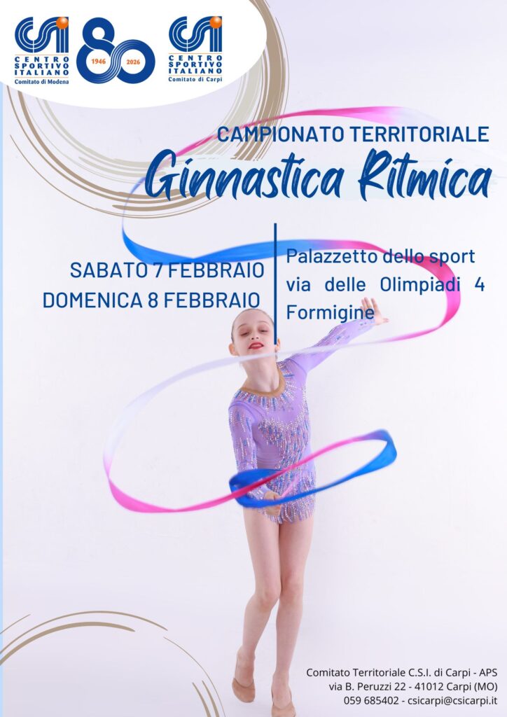 Sabato 7 e domenica 8 febbraio al Palazzetto dello Sport di Formigine (via delle Olimpiadi, 4) si terrà il consueto campionato territoriale di ginnastica ritmica organizzato dai Comitati CSI di Modena e di Carpi.