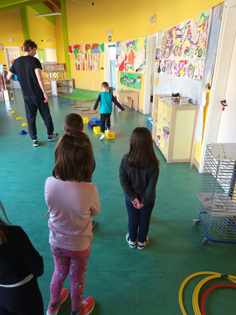 Esperienze ludico motorie a cadenza settimanale rivolte a bambini/e dai 3 ai 5 anni, in orario scolastico da svolgersi in orario scolastico all’interno delle scuole dell’infanzia a forte presenza straniera con lo scopo di aiutare i bambini/e a consolidare le proprie capacità sensoriali, percettive, motorie e sociali.