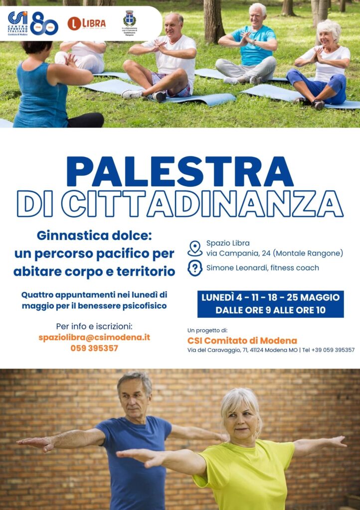 Con “Palestra di cittadinanza”, il CSI Modena organizza presso lo Spazio Libra (via Campania, 24) a Montale Rangone quattro appuntamenti nei lunedì di maggio per il benessere psicofisico con il fitness coach Simone Leonardi.