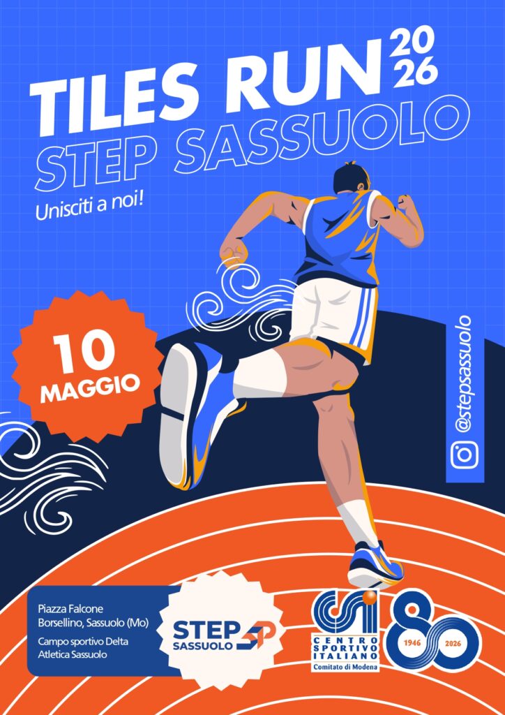 Step Sassuolo organizza domenica 10 maggio la Tiles Run 2026, corsa con partenza da piazza Falcone e Borsellino a Sassuolo.